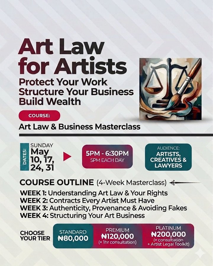 Whether you’re a painter, sculptor, photographer, digital creator, NFT innovator, or Lawyer looking to learn more about Art Law, this program equips you with practical tools, templates, and strategies to protect your rights and maximize your value. By the end, you won’t just be making art—you’ll be running a structured, wealth-building art business with confidence.
